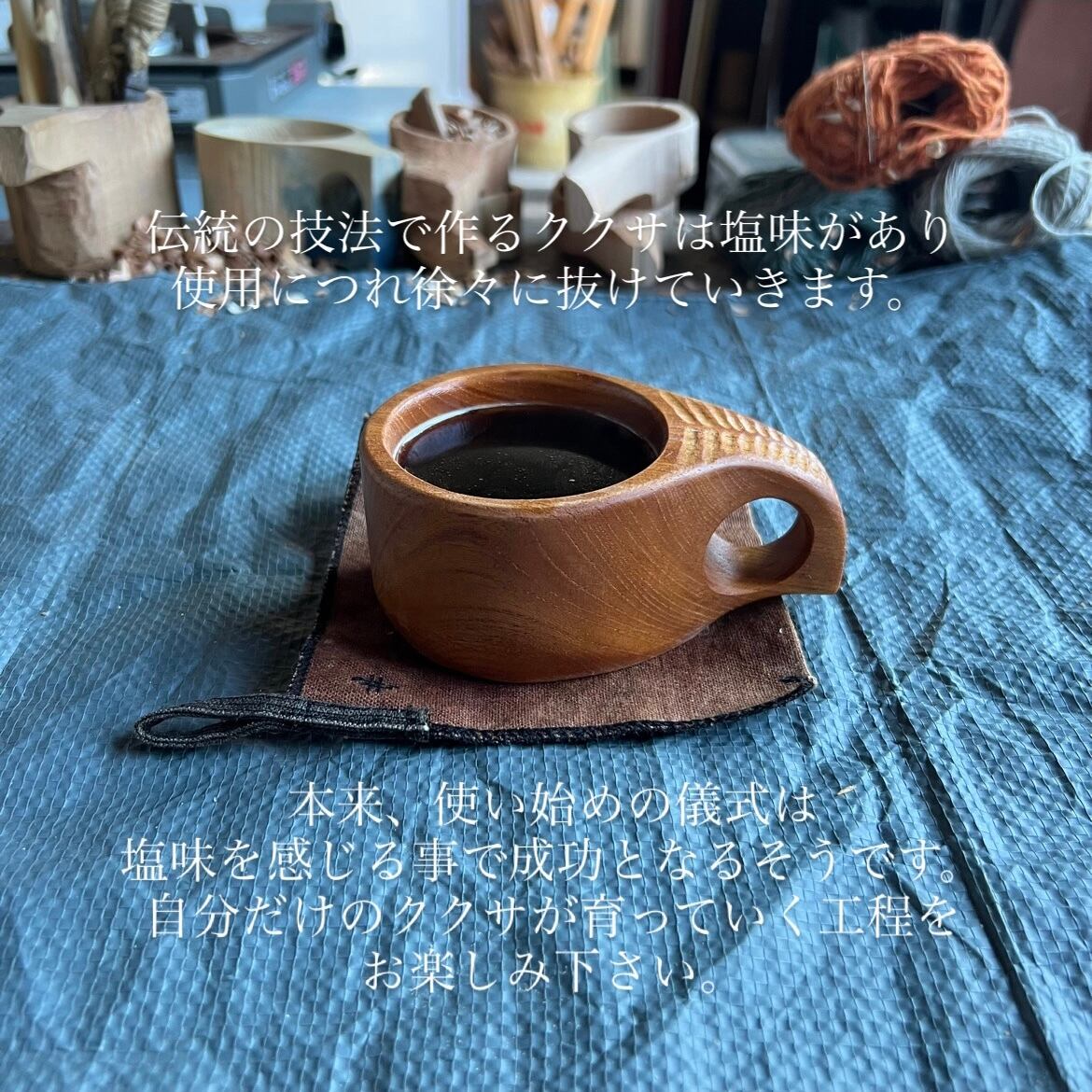 本場のククサは初めて使う際に塩味がして初めてククサの”洗礼の儀式”が成功となるそうです。 塩味も含め本格的なククサが仕上がっていく過程をお楽しみください。