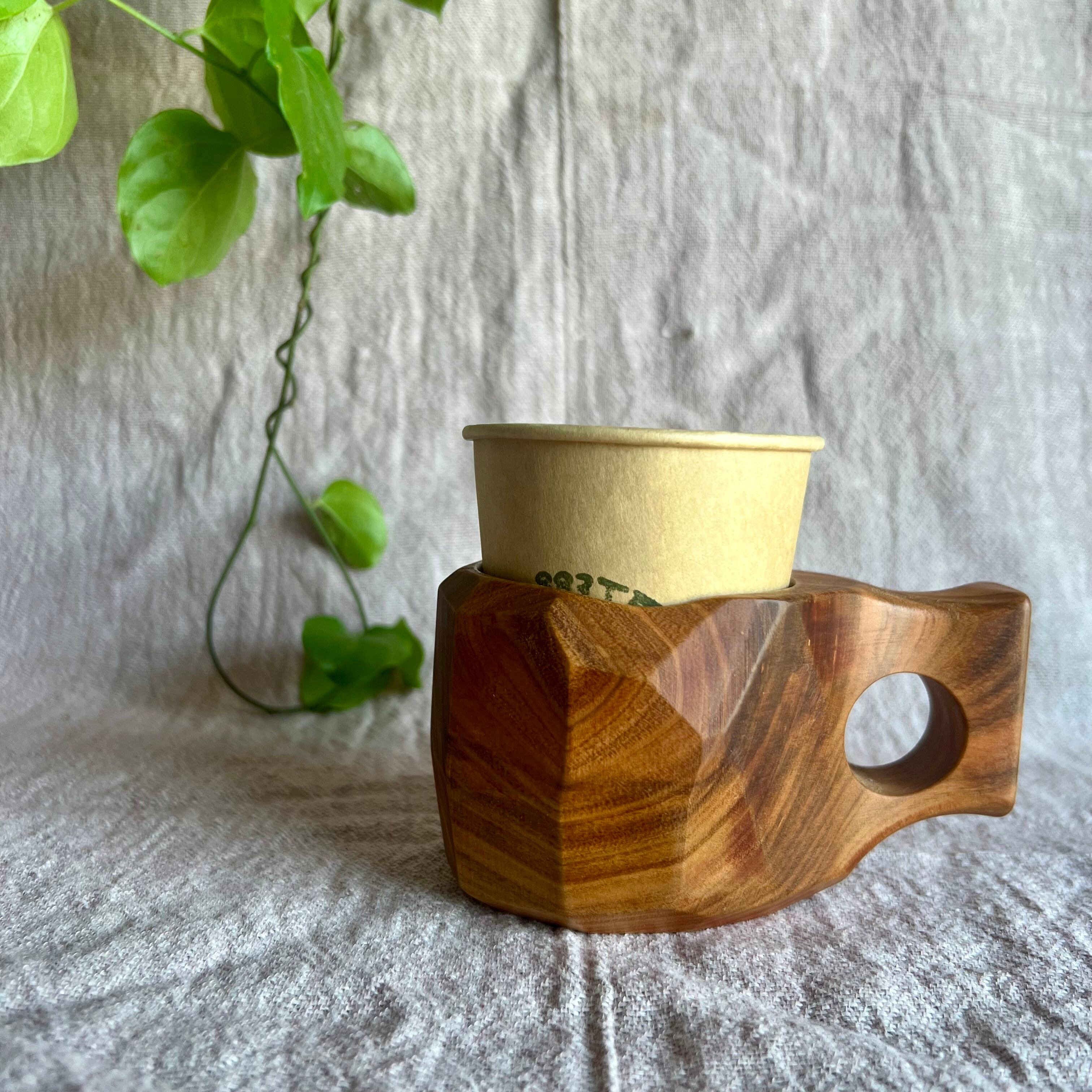 883工房のククサの特徴は穴の深さと形。丁度紙コップが入るデザインとなっておりますので紙コップホルダーとしての使用もできます。