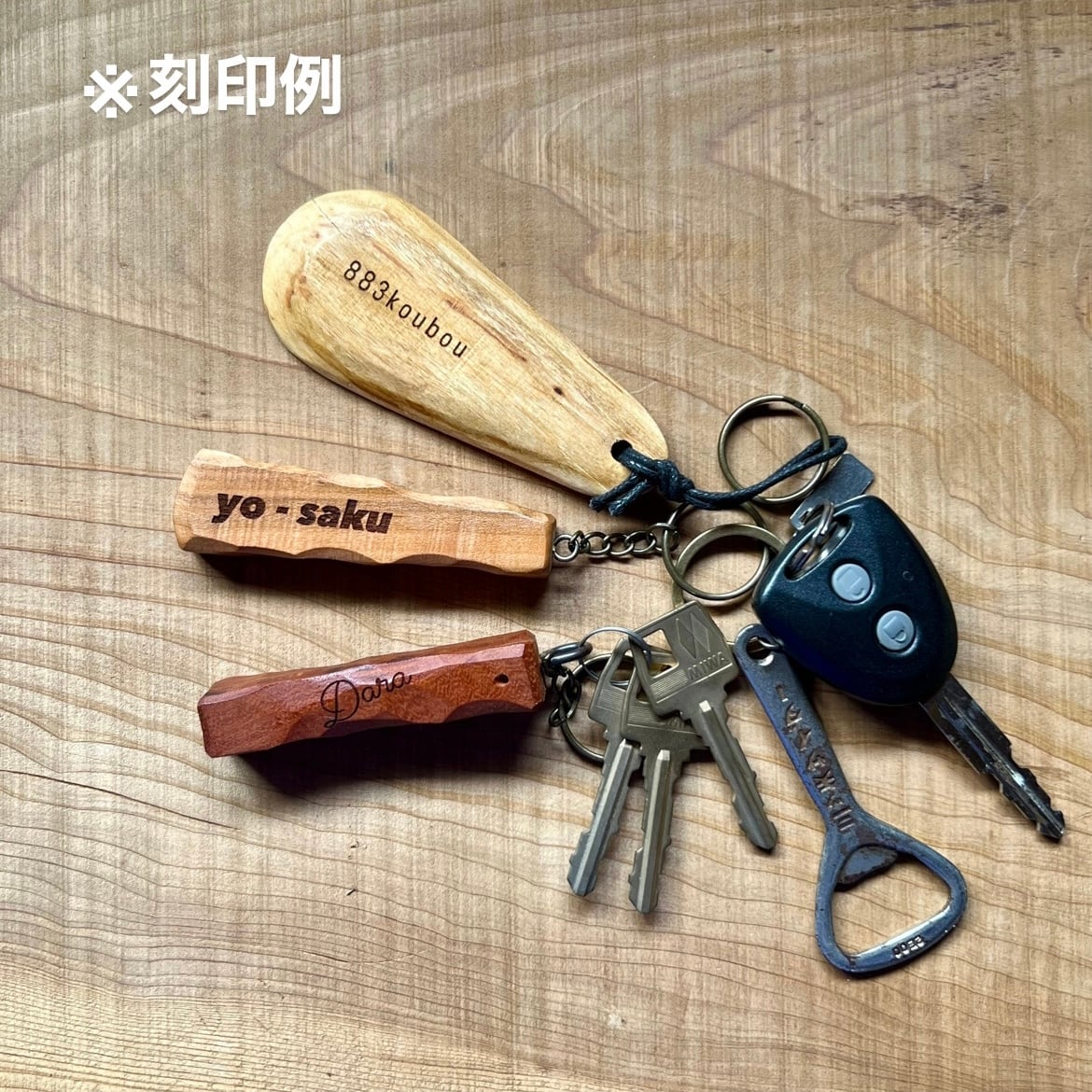 高知県産木材の端材を使い名栗風加工に仕上げたキーホルダー