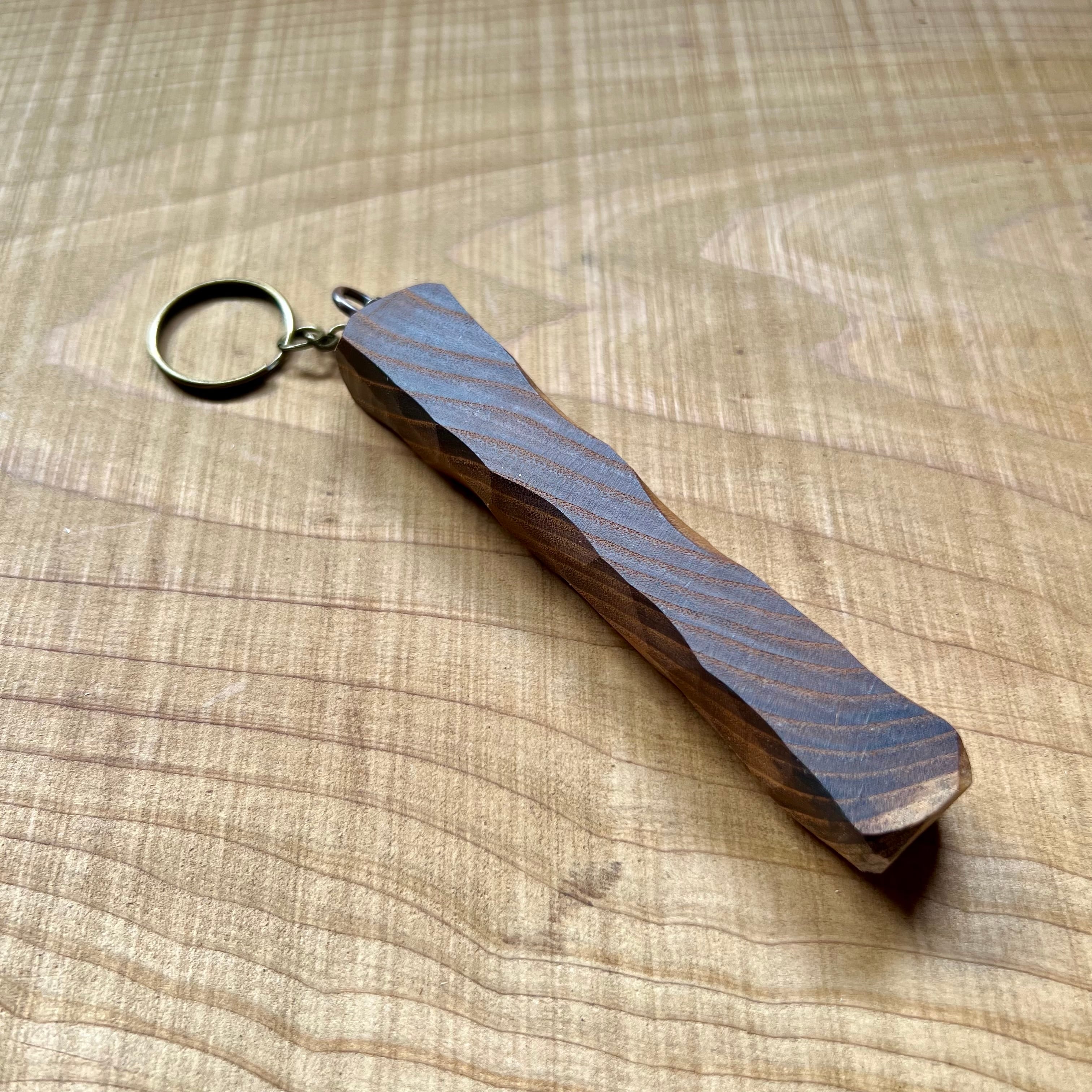 高知県産木材の端材を使い名栗風加工に仕上げたキーホルダー